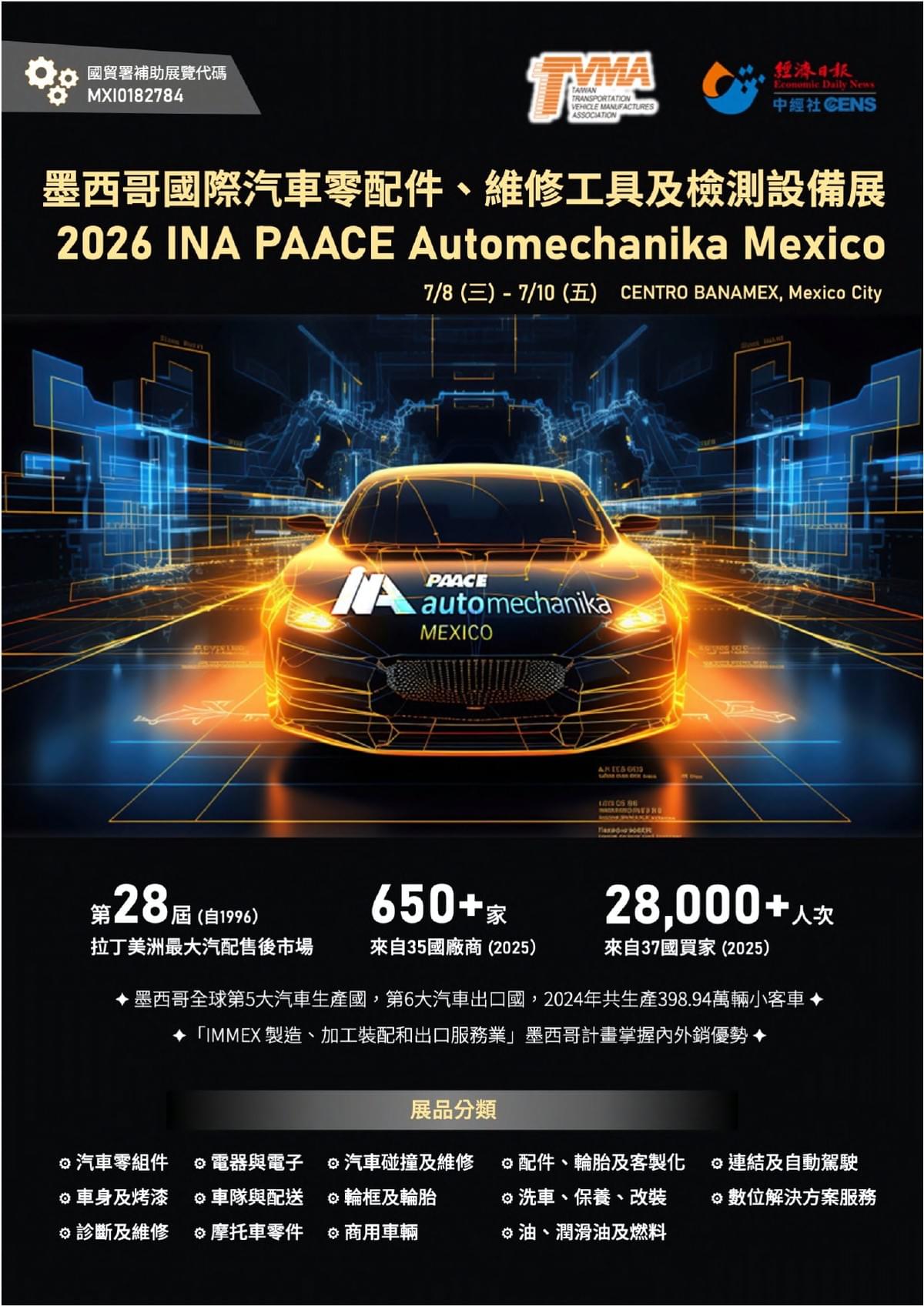 墨西哥國際汽車零配件、維修工具及檢測設備展第28屆將於2026年7月8日至10日於墨西哥市 Centro Banamex展出,是拉丁美洲最大汽配售後市場。90年代起的墨西哥已成為重要的汽車及汽車零配件生產基地,目前是全球第5大汽車生產國,第6大汽車出口國。墨西哥於2003年1月按照北美自由貿易協定的要求取消了所有汽車零部件關稅和國產配件比例限制後,其汽車零部件市場蘊藏的巨大潛力逐漸顯現。